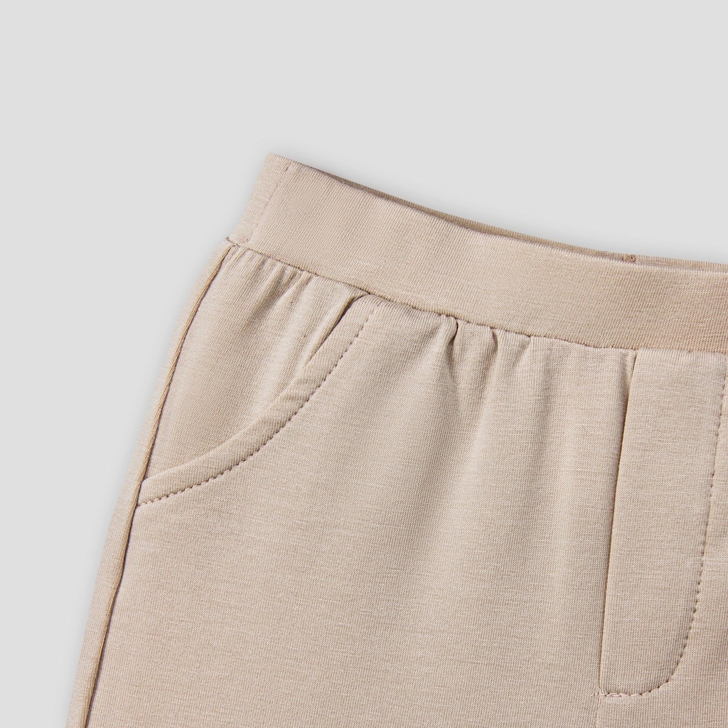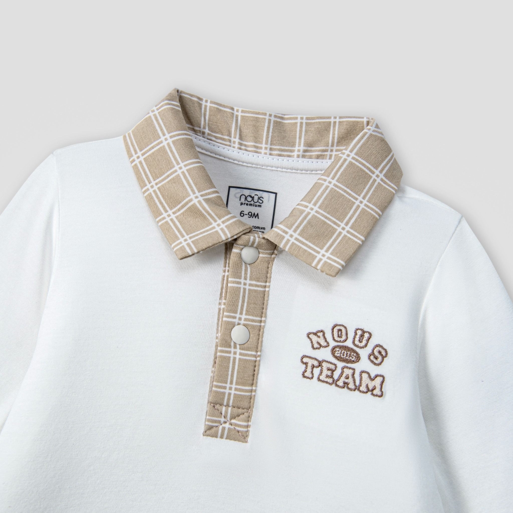 Bộ dài có cổ áo trắng thêu chữ phối quần be nâu NOUS