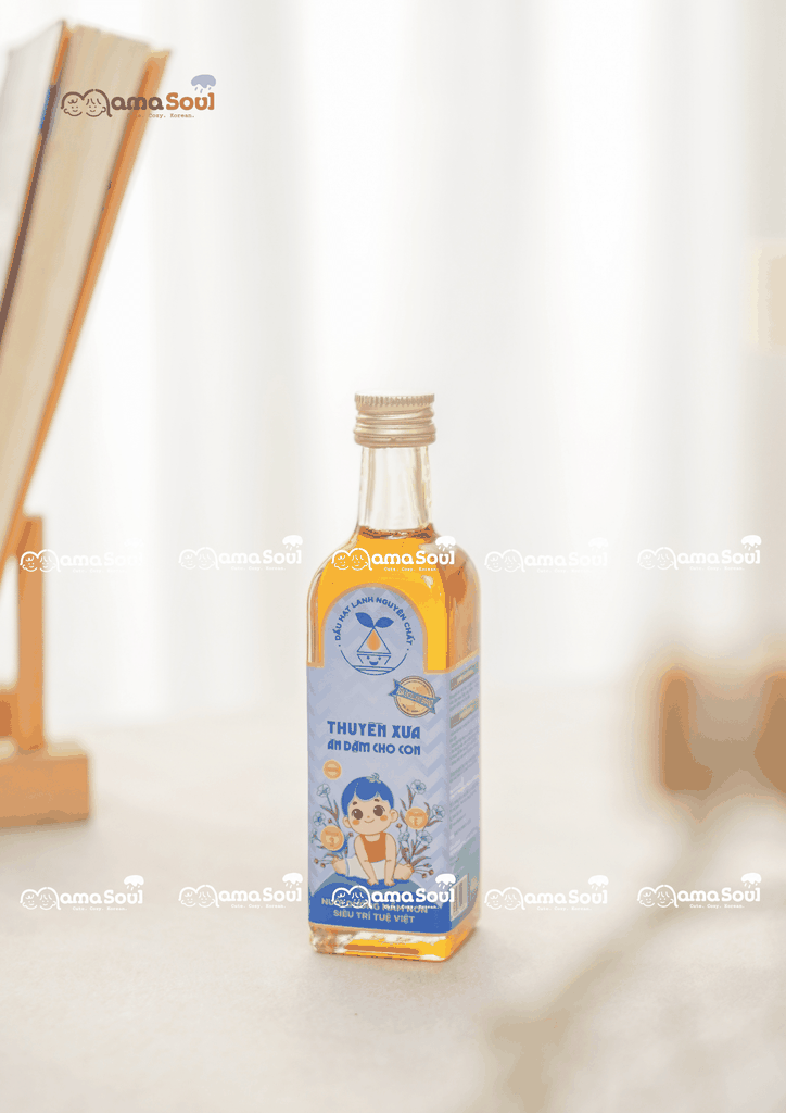 - Trẻ 6 – 12 tháng: Dùng 1/2 – 1 thìa dầu hạt lanh ăn dặm Thuyền Xưa (2,5 – 5ml) vào cháo, súp, bột sau khi nấu chín.