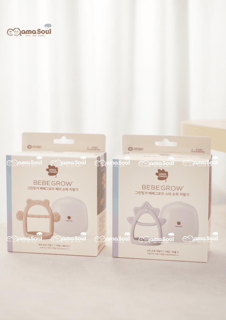 Gặm nướu BebeGrow" là một sản phẩm gặm nướu cho bé từ thương hiệu Greenfinger Bebegrow của Hàn Quốc, được làm từ chất liệu silicone an toàn, giúp giảm đau khi bé mọc răng. Sản phẩm có thiết kế độc đáo như vòng đeo tay giúp bé cầm nắm dễ dàng, và bề mặt có các điểm nhô lên để massage nướu.