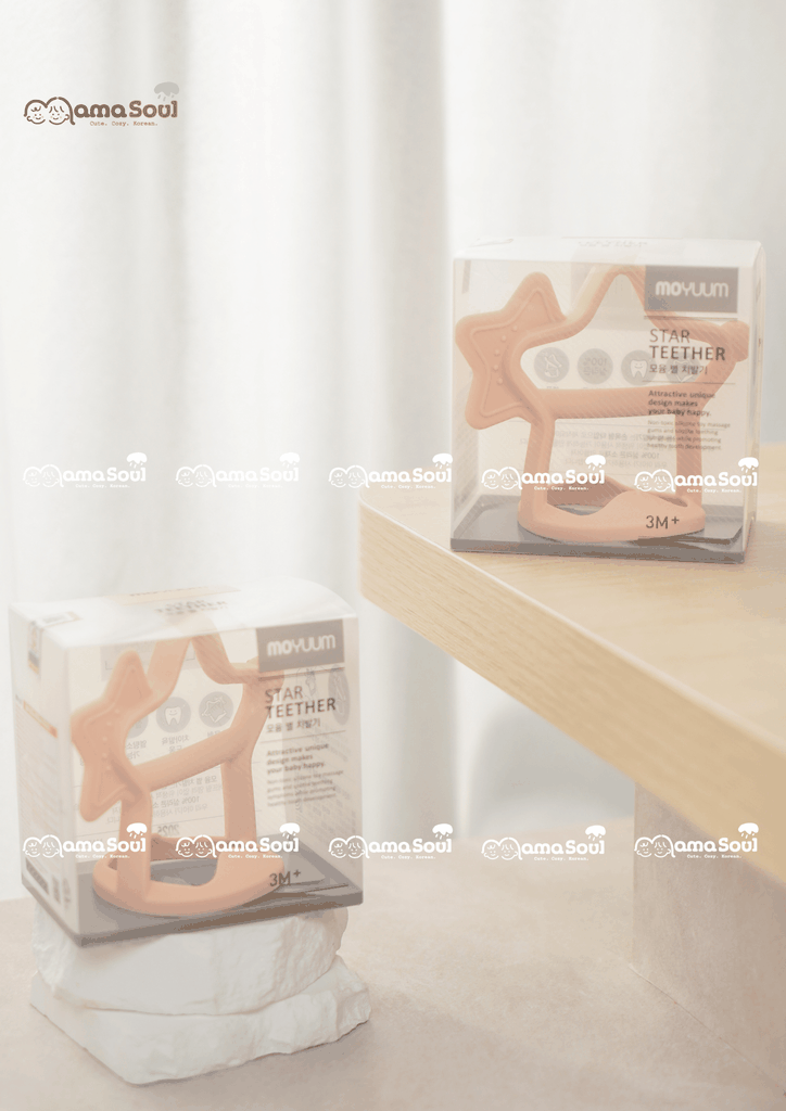 Gặm nướu hình sao Moyuum với 100% silicone bạch kim y tế, được sản trực tiếp tại Hàn Quốc. Đạt chuẩn an toàn KC theo Cục kiểm định an toàn vệ sinh Hàn Quốc, tuyệt đối an toàn cho trẻ nhỏ