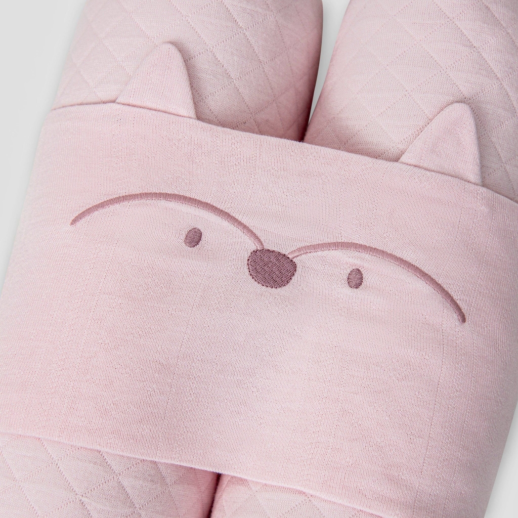 Gối chặn màu hồng nhạt thêu mặt cáo NB NOUS